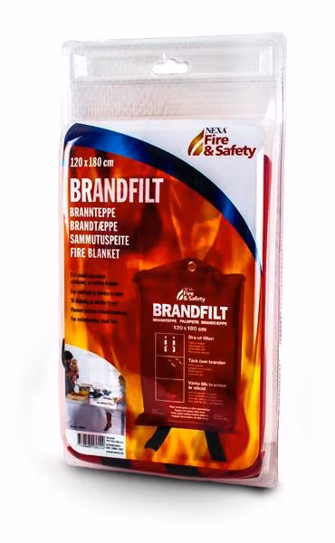 Brannteppe i størrelsen 120x180 cm for rask slukking av branntilløp. Teppet er motstandsdyktig mot varme, og har denne egenskapen fordi de er laget av glassfibervev. Brannteppet er enkelt å henge på veggen. Teppet er et viktig element i brannbekjemping på kjøkken, og legges over brennende gryter, gjenstander og personer som er i brann. Brannteppet kveler forbrenningsprosessen ved å hindre at brannen får oksygen.