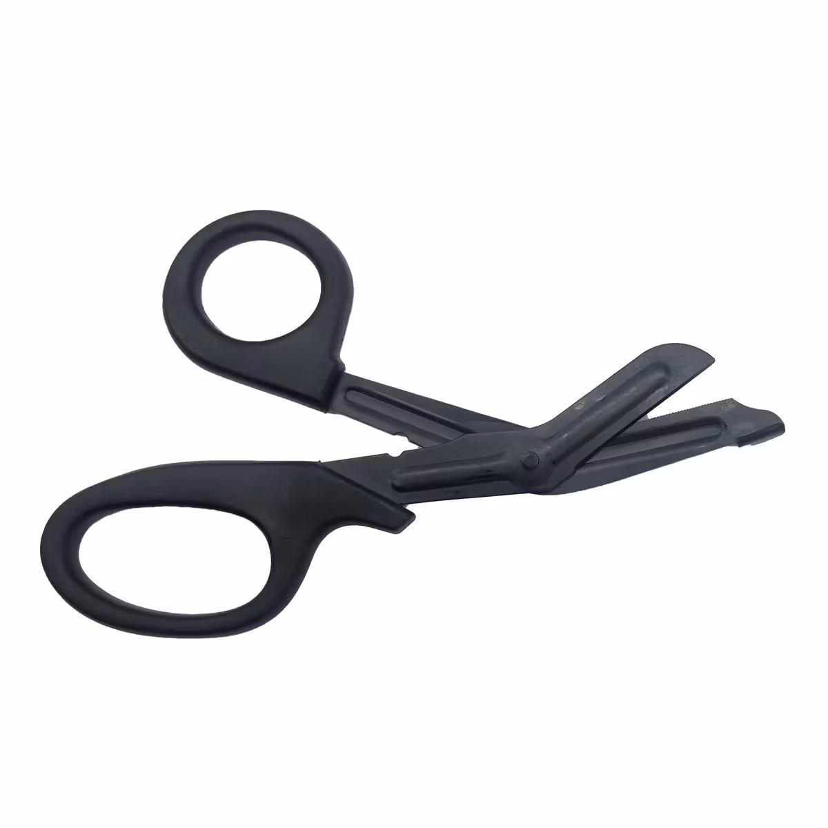 NORSE RESCUE® EMT-saksen er laget av høyverdig svart rustfritt stål med ett takket blad, denne 18,5 cm saksen kan skjære gjennom det tøffeste materialet. Buet stump spiss forhindrer skade på pasienten. Den er fullt autoklaverbar.